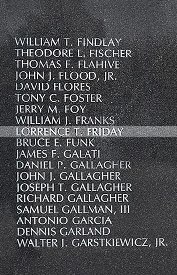 Friday enjoyed auto racing and Installed convertible tops for four years and worked as an auto body repairman and a painter's apprentice before entering the Army in August 1967. The corporal, assigned to Company II of the 3rd Battalion, 12th Intuit. try, 4th Infantry Division1~~, drowned while bathing in a Vietnamese river on April 7, 1968, two weeks before his 26th birthday. He was survived by his parent's three brothers and a sister.