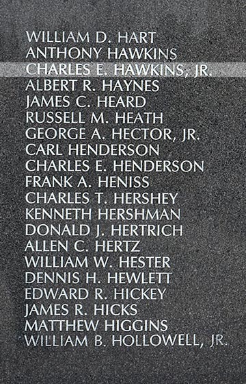Hawkins left Jones Junior High School while in the ninth grade to get a job, but had to quit six months later to care for his invalid mother. Neighbors remember seeing the only child hanging wash outside his mother's house many times and doing other family chores. He twice tried to enlist after his mother died in July 1967, but was not accepted into the Army until October 1968 when he could meet the age requirement. Hawkins wanted to learn electronics, but was put in the infantry and trained to be a rifleman. The 19-year-old specialist four was sent to Vietnam in April 1969 and assigned to Company D of the 1st Battalion, 501st Infantry, 501st Airborne Division. He died in Thua Thien Province on May 21, 1969, during the A Shau Valley campaign. He was survived by his father.