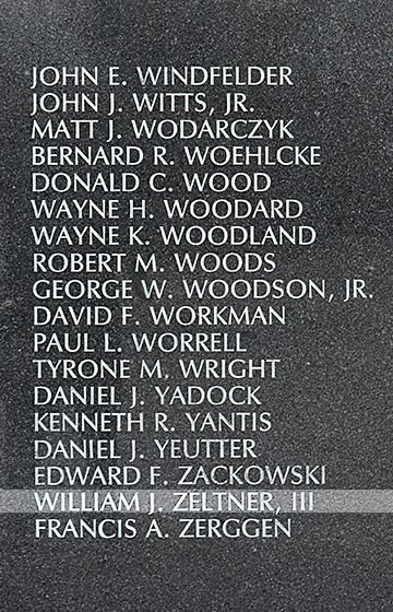 "Bill" Zeltner had told his parents he would not enlist to fight in Vietnam, but went after being drafted in September 1968. The light weapons infantryman felt a deep empathy for Vietnamese children, and wrote home asking for balloons and other toys because many of the youngsters the corporal encountered had so little. Zeltner was assigned to Company A of the 4th Battalion, 31st Infantry, 196th Infantry Brigade. He died on Aug. 22, 1969, at the age of 20. Zeltner had told friends his ambition was to return home, go to work for Philadelphia Electric Co., and buy a new Buick Riviera. The George Washington High School graduate was survived by his parents, a brother and four sisters